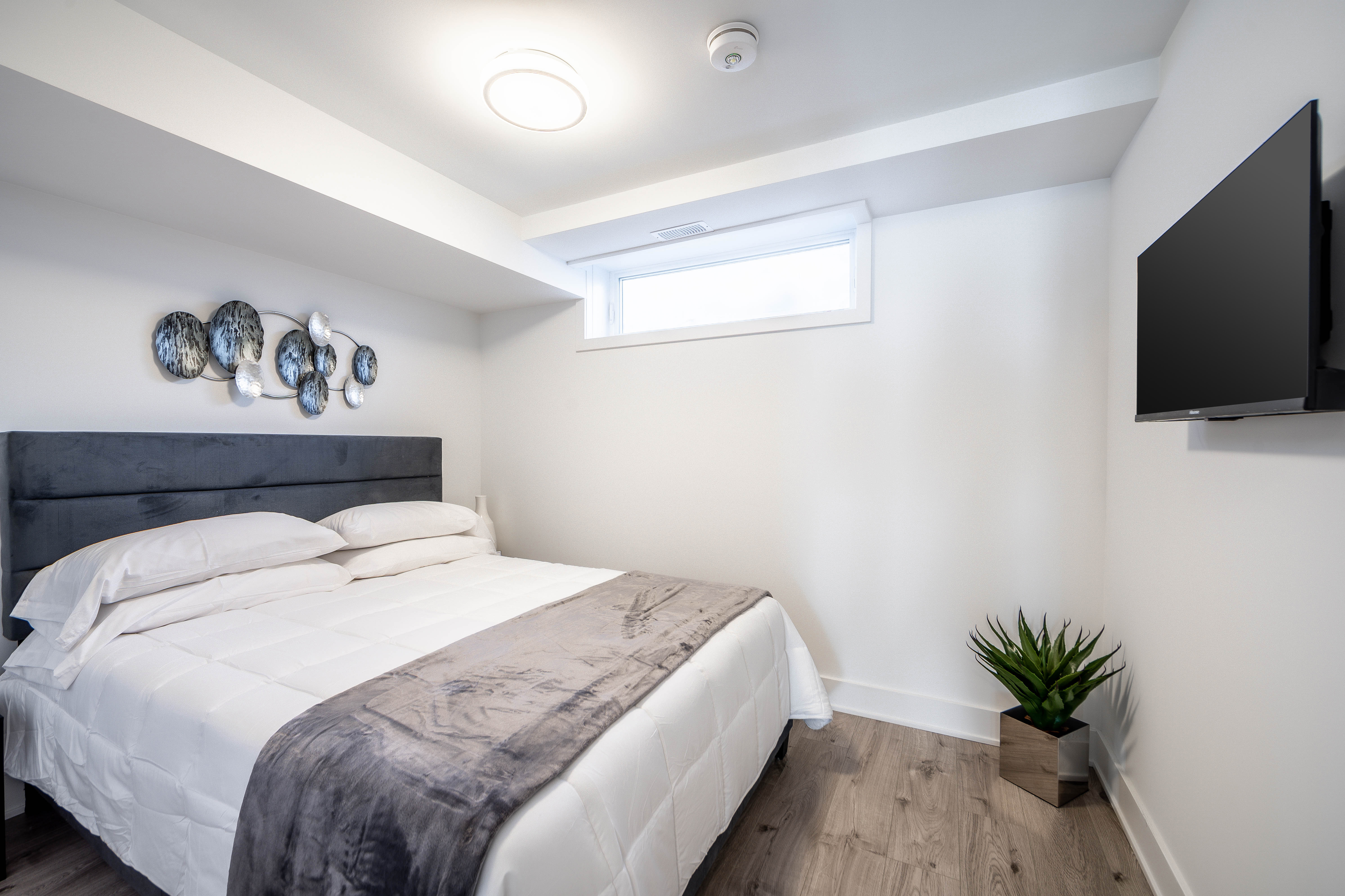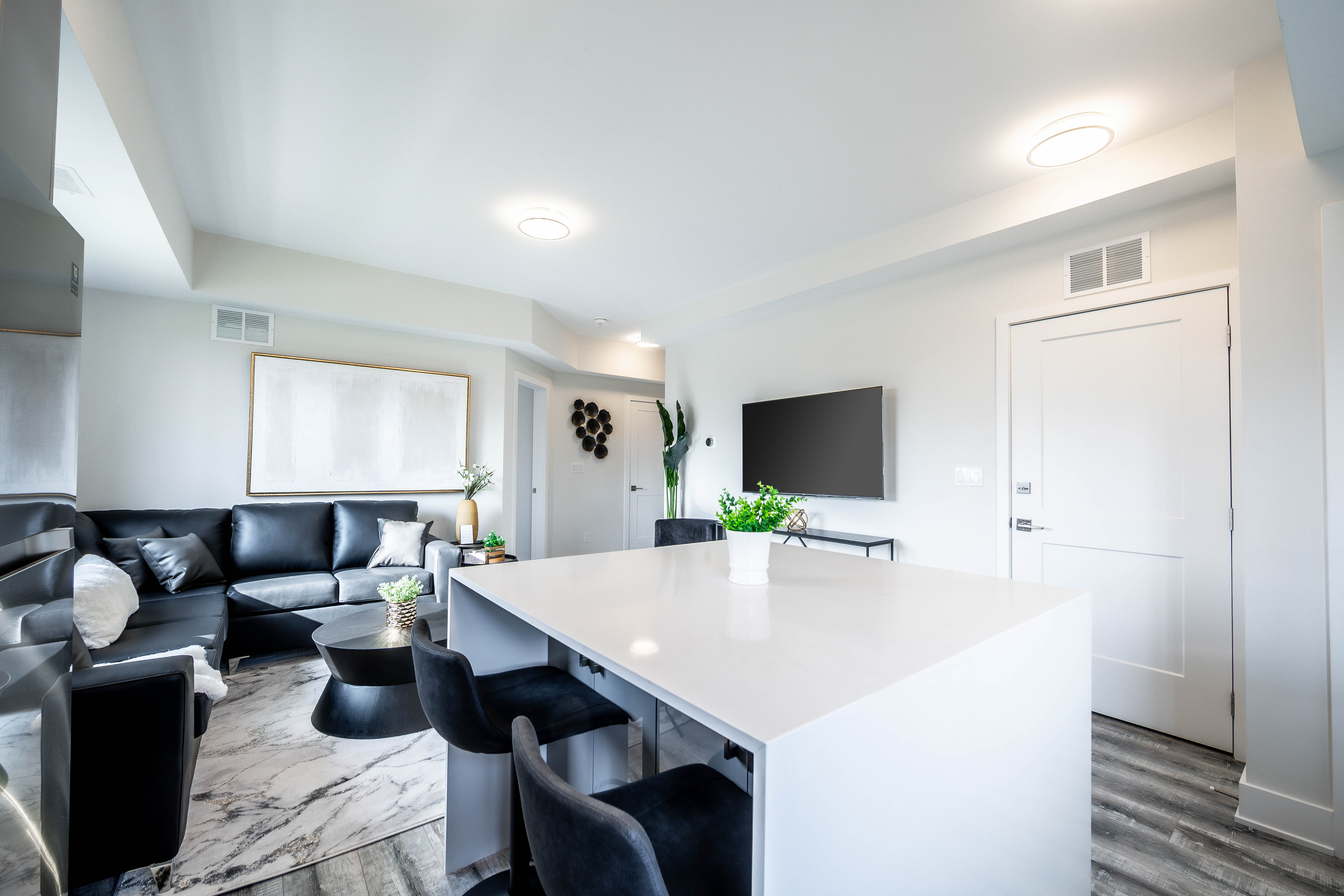 We’ve selected a thoughtful mix of durable flooring: stylish laminate in the living room, classic ceramic tile in the kitchen, and plush broadloom for comfort in the bedroom.